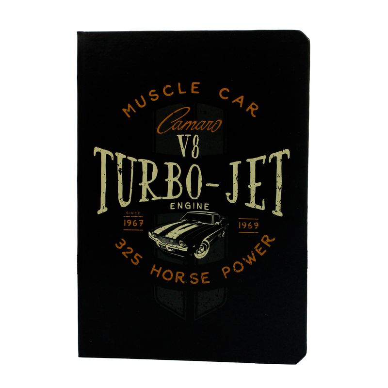 O Caderno Camaro Vintage Turbo Jet é a fusão perfeita entre performance e história. Com um design que exala a força do lendário motor V8 Turbo-Jet, ele homenageia os 425 cavalos que marcaram época.